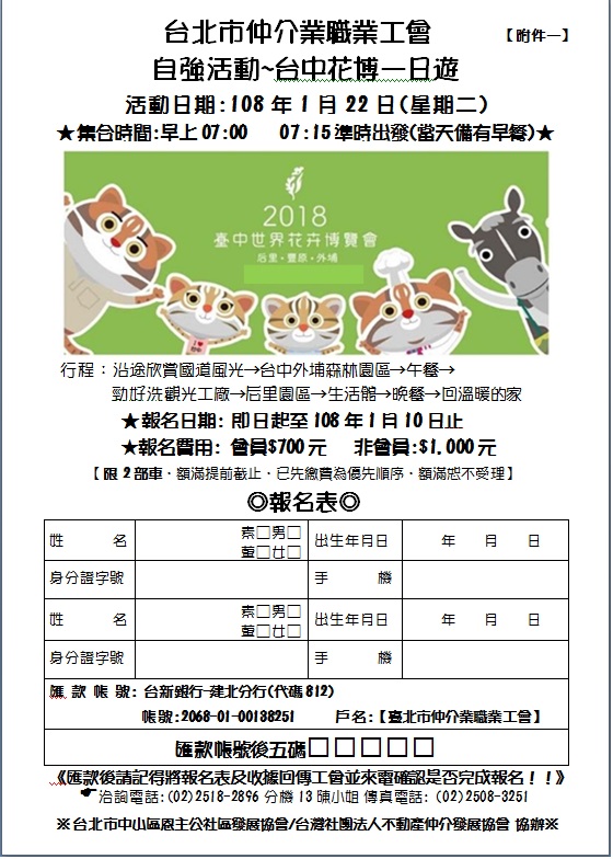 自強活動~台中花博一日遊-報名表